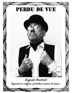 L’est pas « feignàs » Auguste, comme on dit par chez lui, et sa réussite, il l’a pas volée. Surtout qu’il a pas toujours eu d’la chance. Déjà il est né bon dernier des sept enfants Bourriol. La ferme, ce serait donc pas pour lui. Après y a eu la conscription, à Saint-Flour, quand il avait 20 ans. a tiré un numéro gagnant. Un an de service seulement ! Sauf que le gars devant lui il a pas passé le conseil de révision : déclaré inapte. C’est comme ça qu’Auguste a fait cinq ans d’armée pour un autre et que, quand il est revenu, son père l’a pas reconnu. Il a remis ses sabots et il est monté à Paris. Il avait dans la poche une recommandation pour un lointain parent qui faisait le négoce de peaux, de chiffons et de ferraille vers la Bastille. A peine arrivé, on lui a donné une soupe et un bout de pain, on lui a montré le coin de grenier où il pouvait dormir et il a appris le métier. Cinq ans de plus où il a trimé et mis de côté tout ce qu’il gagnait. Puis il a trouvé à s’établir à Essonne : un local à louer et surtout pas de concurrence aux alentours. Il lui manquait plus qu’une femme. Il est reparti au village et il en est revenu en tapissière cette fois, en voiture à cheval, avec Joséphine. La grâce de Joséphine quand il l’a vue danser la bourré ça l’a conquit,