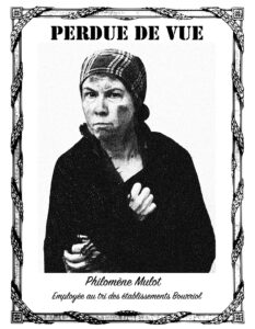 Philomena est née en Vénétie, la date exacte elle ne la sait pas. Elle a quitté le pays il y a vingt ans, avec Lino, son mari, après que leur trois enfants sont morts de la pellagre. On dit que c’est à force manger rien que du maïs qu’ils sont tombés malades. Mais enfin le maïs c’est tout ce qu’on trouvait à manger et de pas manger du tout on en meurt aussi… Un soir que Lino se serrait contre elle dans le lit, Philomena a dit : «pas question de refaire un gosse sur cette terre qui m’en a déjà avalé trois» et elle lui a tourné le dos. C’est comme ça qu’ils sont partis en France avec l’idée de gagner un peu d’argent pour se payer le bateau jusqu’à New York. Et puis juste avant d’arriver à Paris, Lino est mort. Un os de lapin dans un repas offert par les dames de la paroisse de Corbeil… Elles étaient pas fières les dames. Pour se racheter une conscience elles ont aidé Philomena à trouver un travail : chez Bourriol, un auvergnat qui fait commerce de chiffons, de ferrailles et de… peaux de lapin. Ça lui plaît pas moins qu’autre chose. Il fait pas toujours très chaud dans le magasin où avec trois autres ouvrières elle trie sur des tables des sacs entiers de vieux vêtements un jour, un autre jour des bouteilles et des tessons avec quoi faut pas se couper, un autre jour des os et un autre… ben les peaux des lapins… L’été ça pue comme l’enfer. Tout de suite après son embauche elle a commencé à se faire appeler Philomène et puis à pas trop causer pour qu’on n’entende pas son accent qui lui rappelle d’où elle vient et ses malheurs. C’est peut-être ça, son silence, qu’a tant plu à Gaston Mulot, un ouvrier de la chapellerie Tracassin. Toutes les semaines il passait chez Bourriol récupérer des asticots dans la fosse aux os, pour aller pêcher dans l’Essonne. Et puis un petit bouquet d’oeillets par ci,un gâteau à la crème par là, il a su se faire remarquer gentiment Gaston. En trois mois de temps elle est devenue Philomène Mulot.