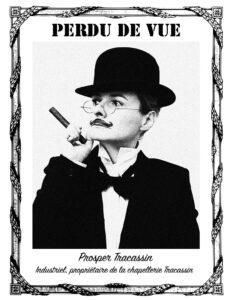 Chapelier c’était pas sa vocation à Prosper Tracassin. Mais après avoir juré à son père sur son lit de mort qu’il allait bien reprendre l’usine familiale d’Essonne, il n’y avait plus moyen de revenir en arrière. Prosper est un ingénieur et un inventeur. Il s’imaginait déjà héros d’un roman de Jules Verne, alors comment concilier aventures scientifiques et couvres-chefs ? À pas même trente ans le pauvre Prosper se retrouve à pleurer ses rêves de machines volantes et d’explorations sous-marines devant une vingtaine de têtes en bois. Et là : eurêka ! Des machines, il allait en construire : des machines à couper le poil de lapin, à le fouler, à le souffler, à le mouler… Des machines et des tables immenses qui rouleraient devant ses ouvriers ! Et alors pas vingt mais cent, mais mille formes en bois. Et surtout un modèle de chapeau parfait, un sublime haut de forme que tous les hommes d’importance voudraient porter. Un chapeau pour les banquiers, les ministres, les rois ! Prosper s’est consolé, il a dessiné de belles mécaniques et aujourd’hui, là où son père employait vingt ouvriers,ce sont cent cinquante employés spécialisés qui chaque jour viennent fabriquer 50 000 hauts de formes par an à l’usine Tracassin. Le tout en poil de lapin de qualité, doublé de soie. Et c’est pas tout ! Prosper a vendu des brevets un peu partout en France et même en Angleterre. Son rêve : voir un de ses chapeaux sur la tête de Jules Verne.